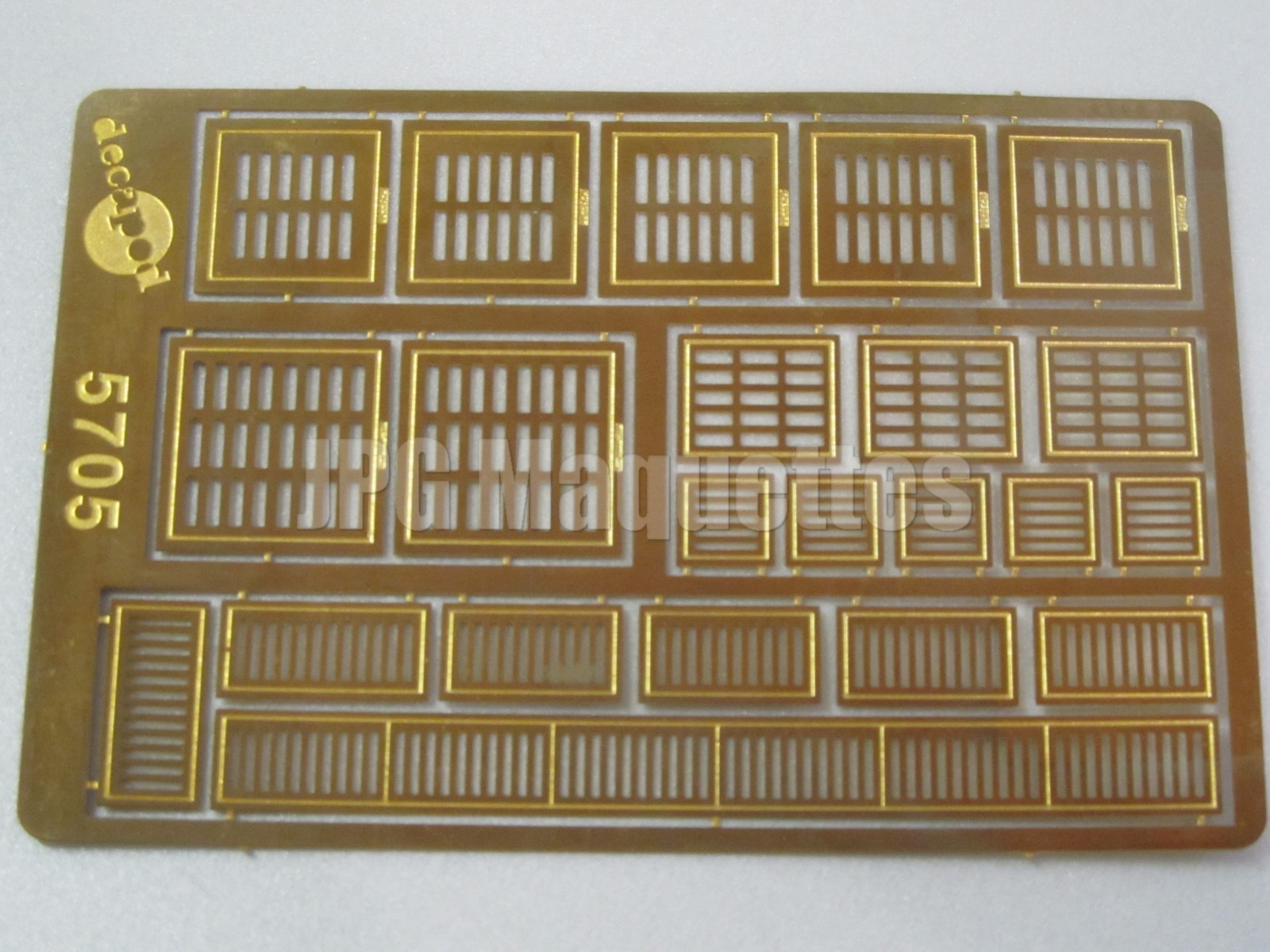 Plaque de 22 grilles d'évacuation des eaux diverses à l'échelle 1/43° en laiton photodécoupé.Matériel de la marque décapod