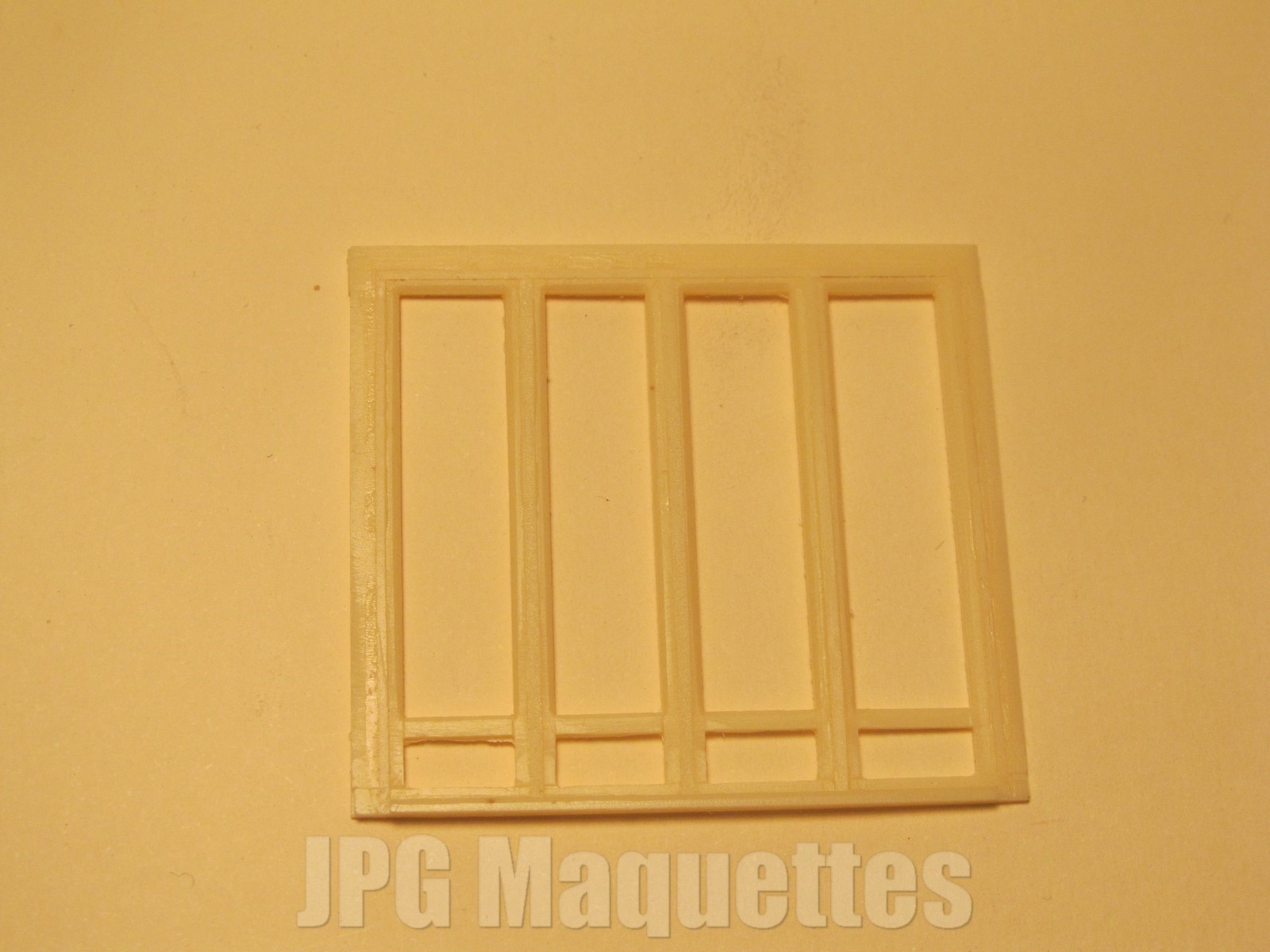 Porte fenêtre " bois " 4 vantaux à encastrer par l'arrière , dimensions utiles 48x45 mm, en résine, à peindre.Partie basse ajourée.