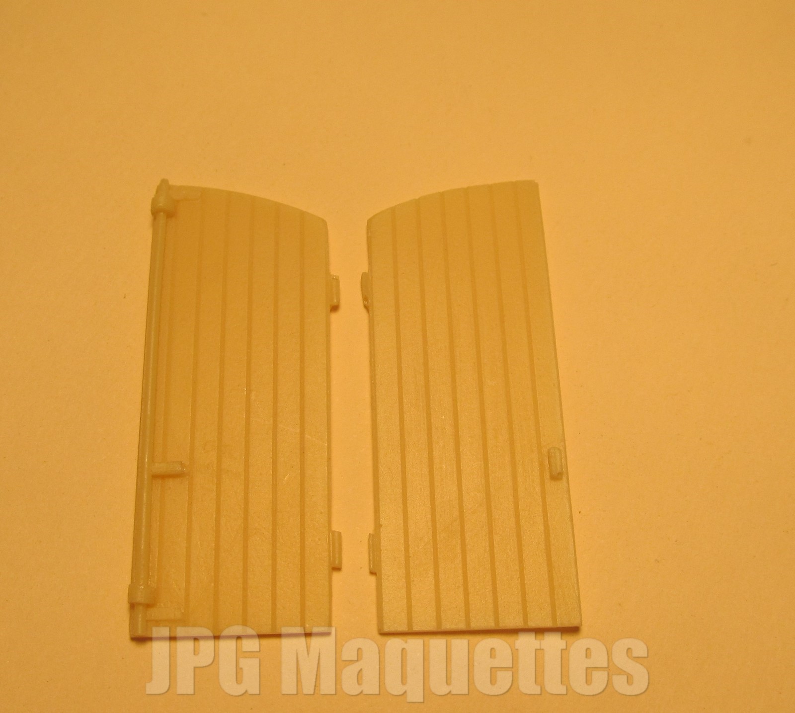 Volet "bois" plein cintré "ouvert", 1 droit + 1 gauche , dimensions utiles 18*46 mm chacun , en résine, à peindre.