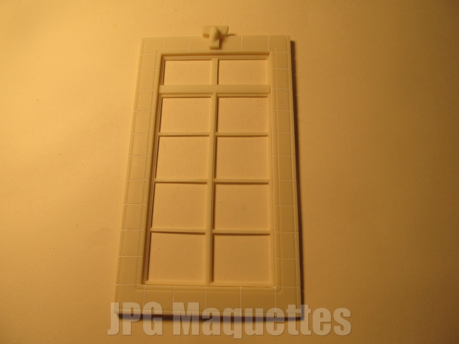 Fenêtre 8 carreaux avec imposte droite 2 carreaux avec chambranle droite gravée en résine à peindre.