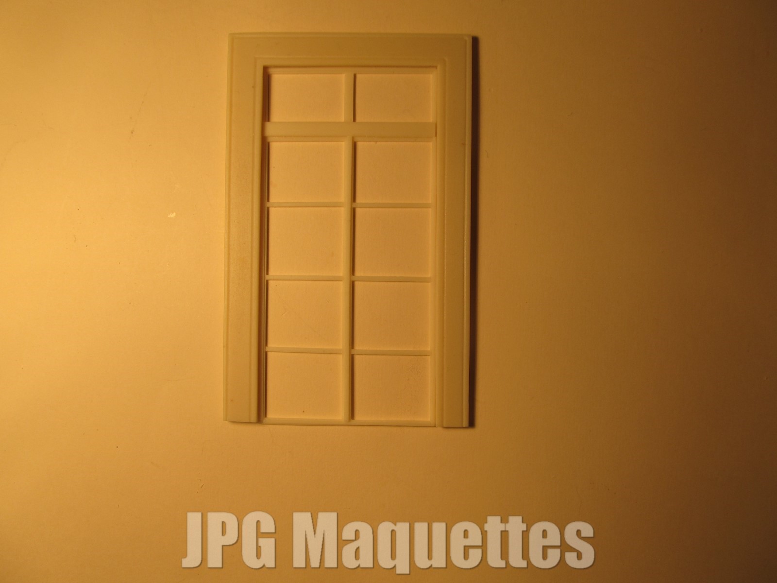 Porte fenêtre 8 carreaux avec imposte droite 2 carreaux avec chambranle droite lisse en résine à peindre.