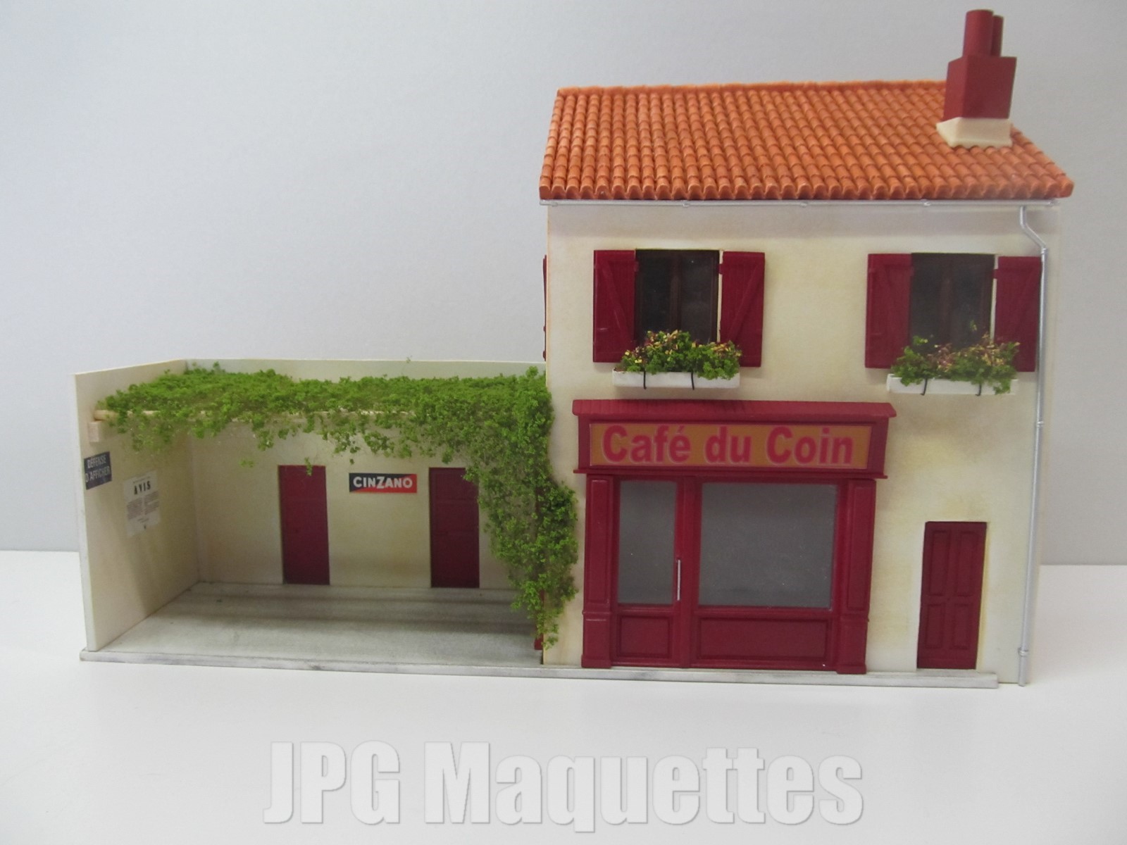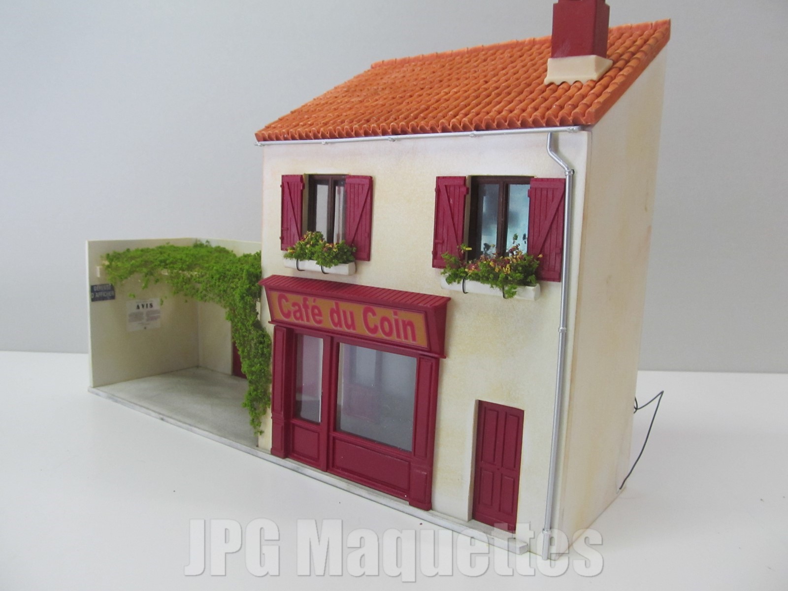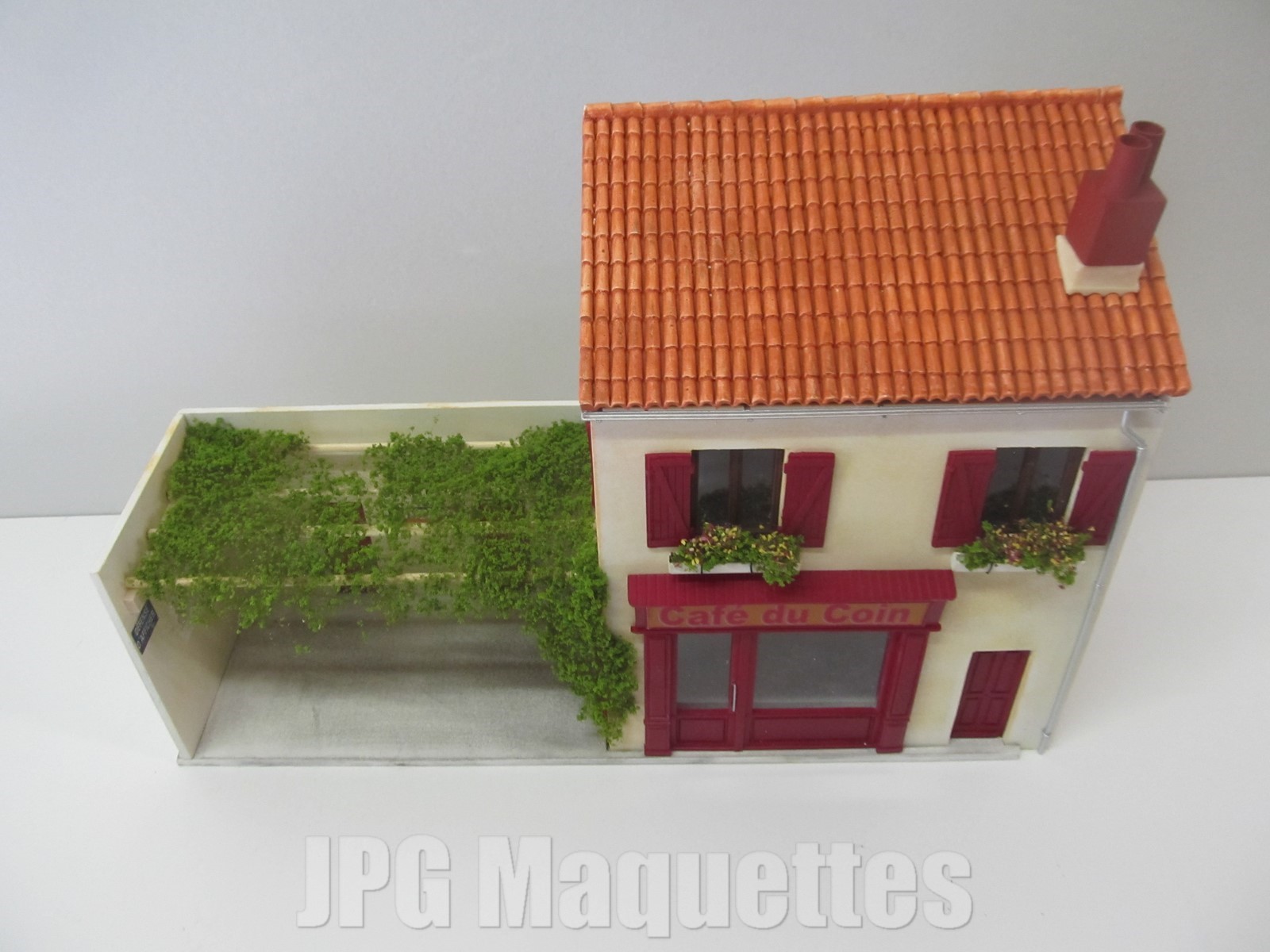 Bâtiment en PVC, toiture en plâtre tuiles rondes rouges, devanture commerce et huisseries en résine,livré avec une lampe 12 vcc