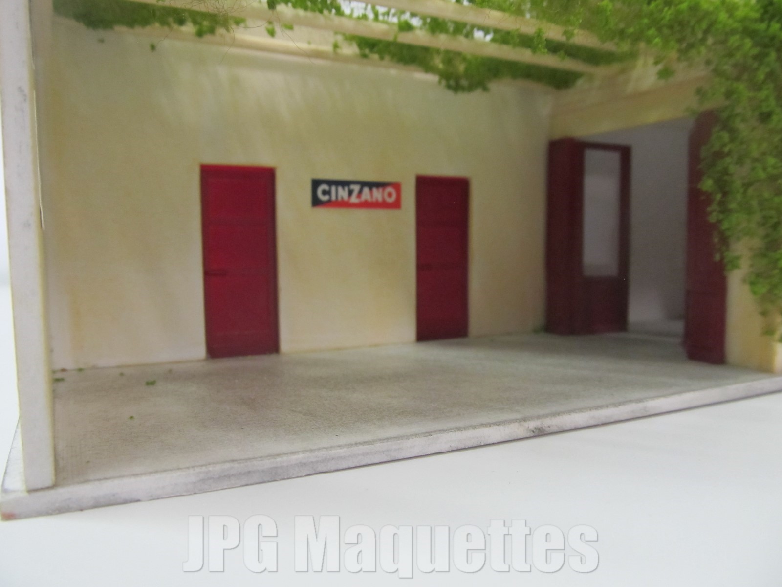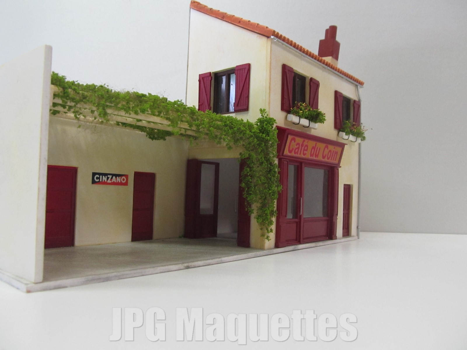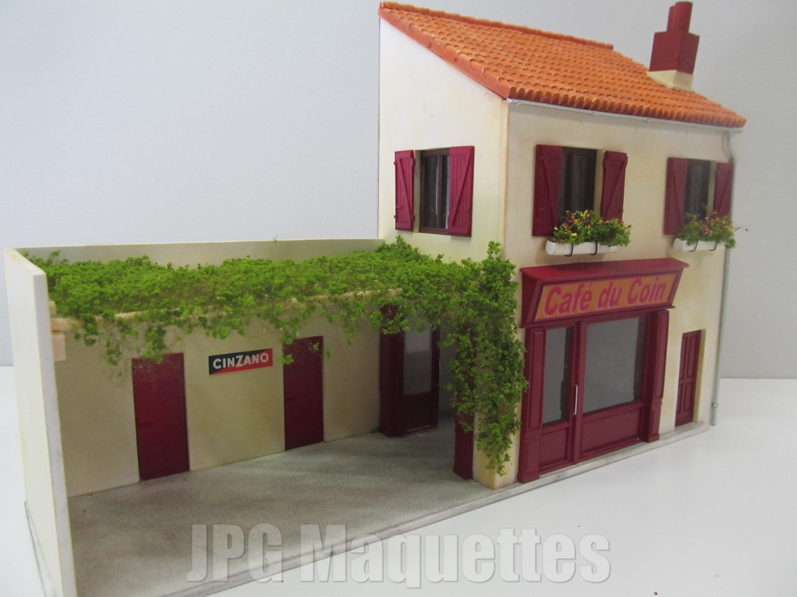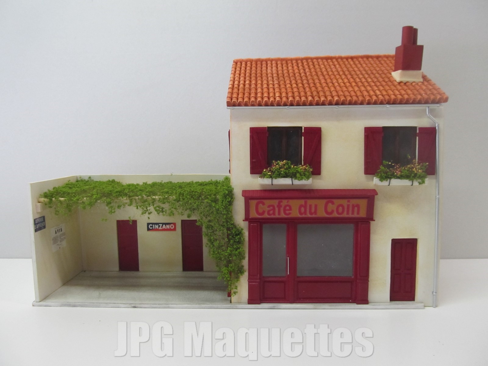 Bâtiment en PVC, toiture en plâtre tuiles rondes rouges, devanture commerce et huisseries en résine,livré avec une lampe 12 vcc