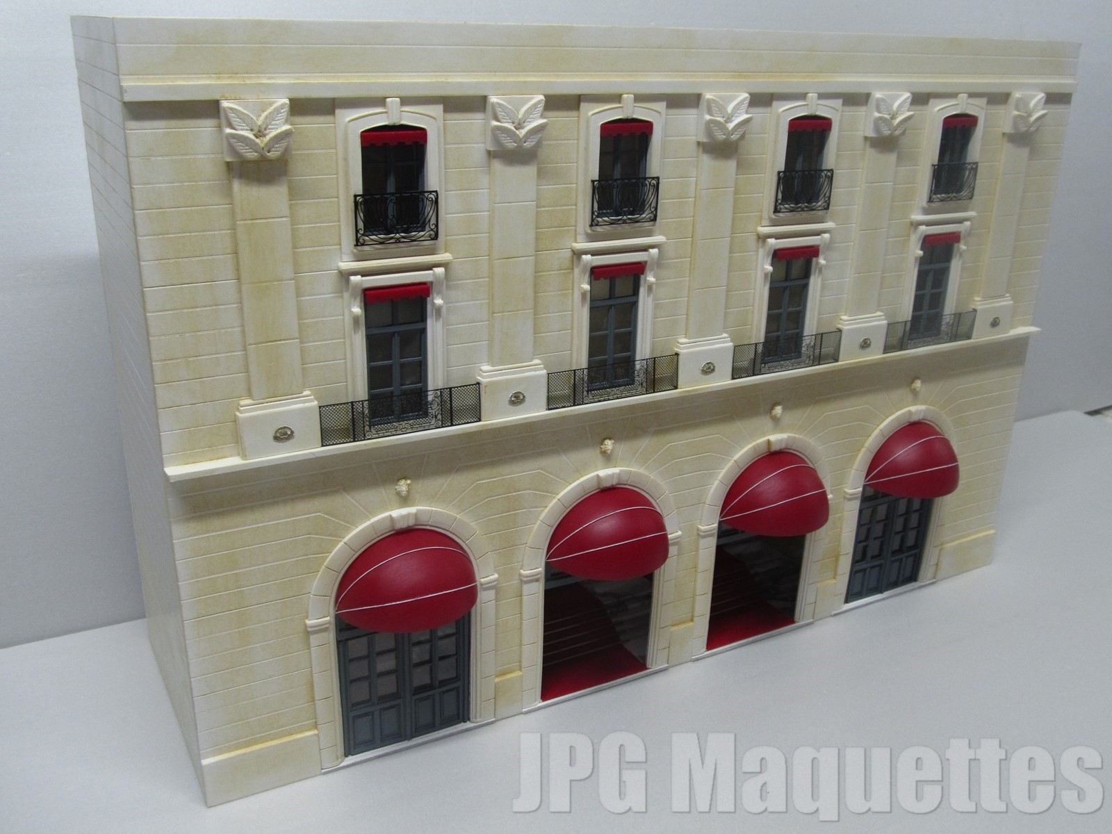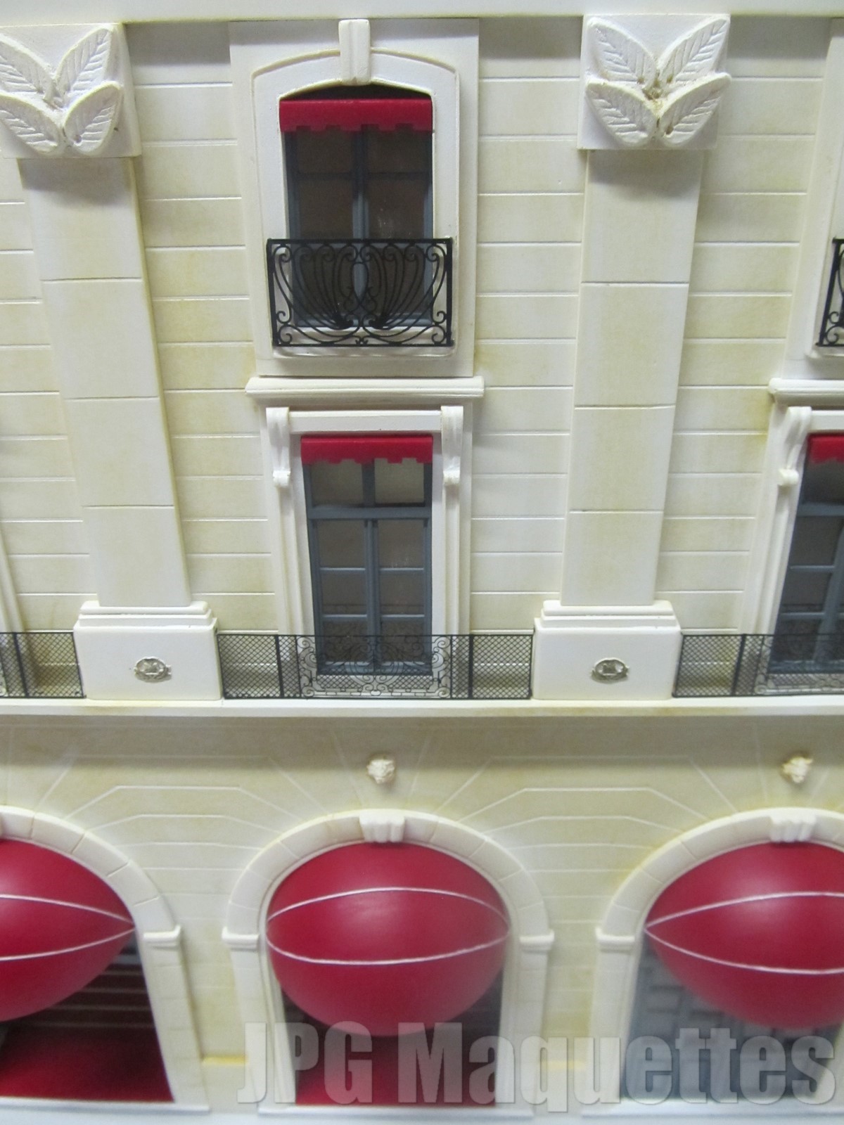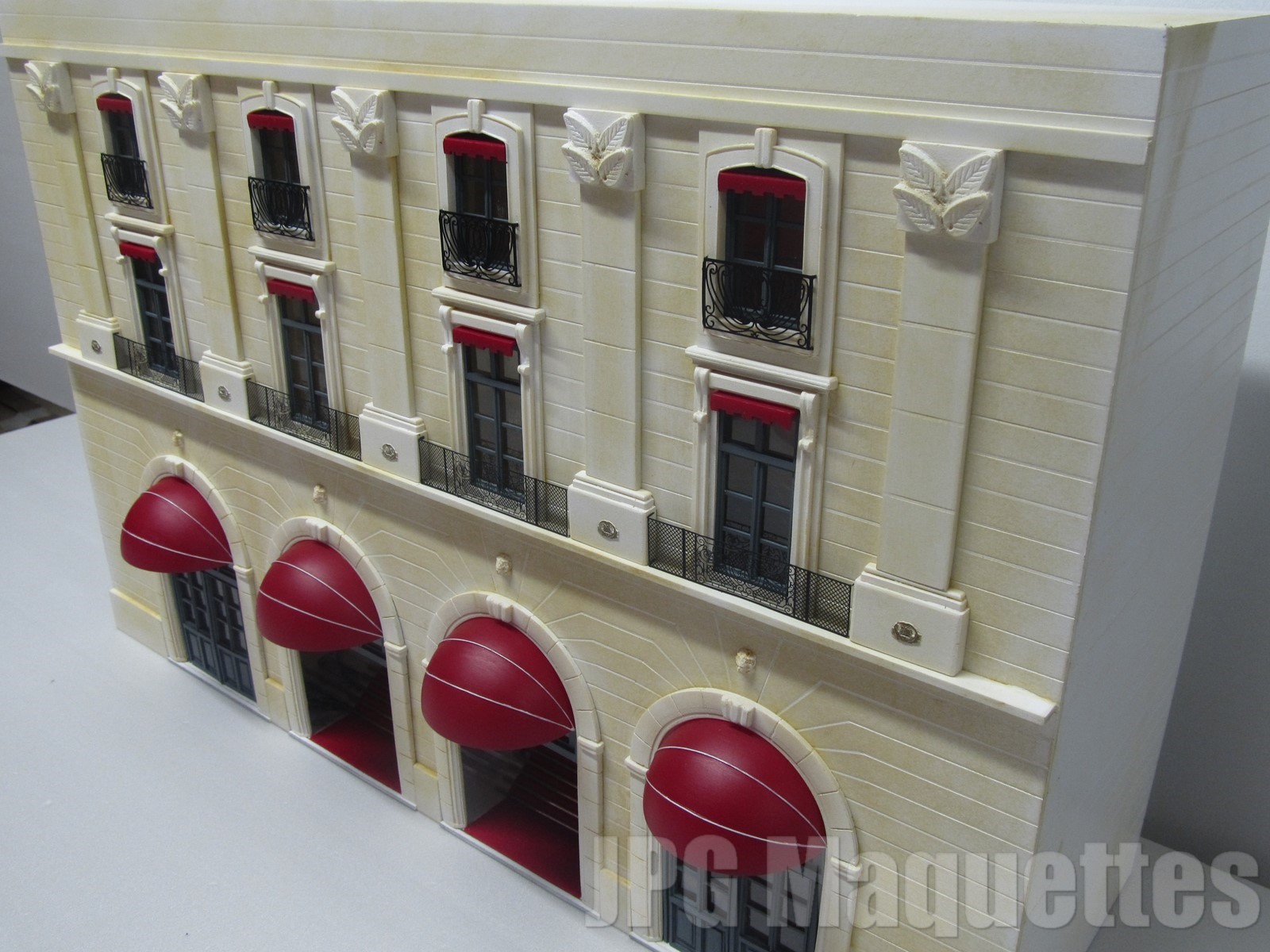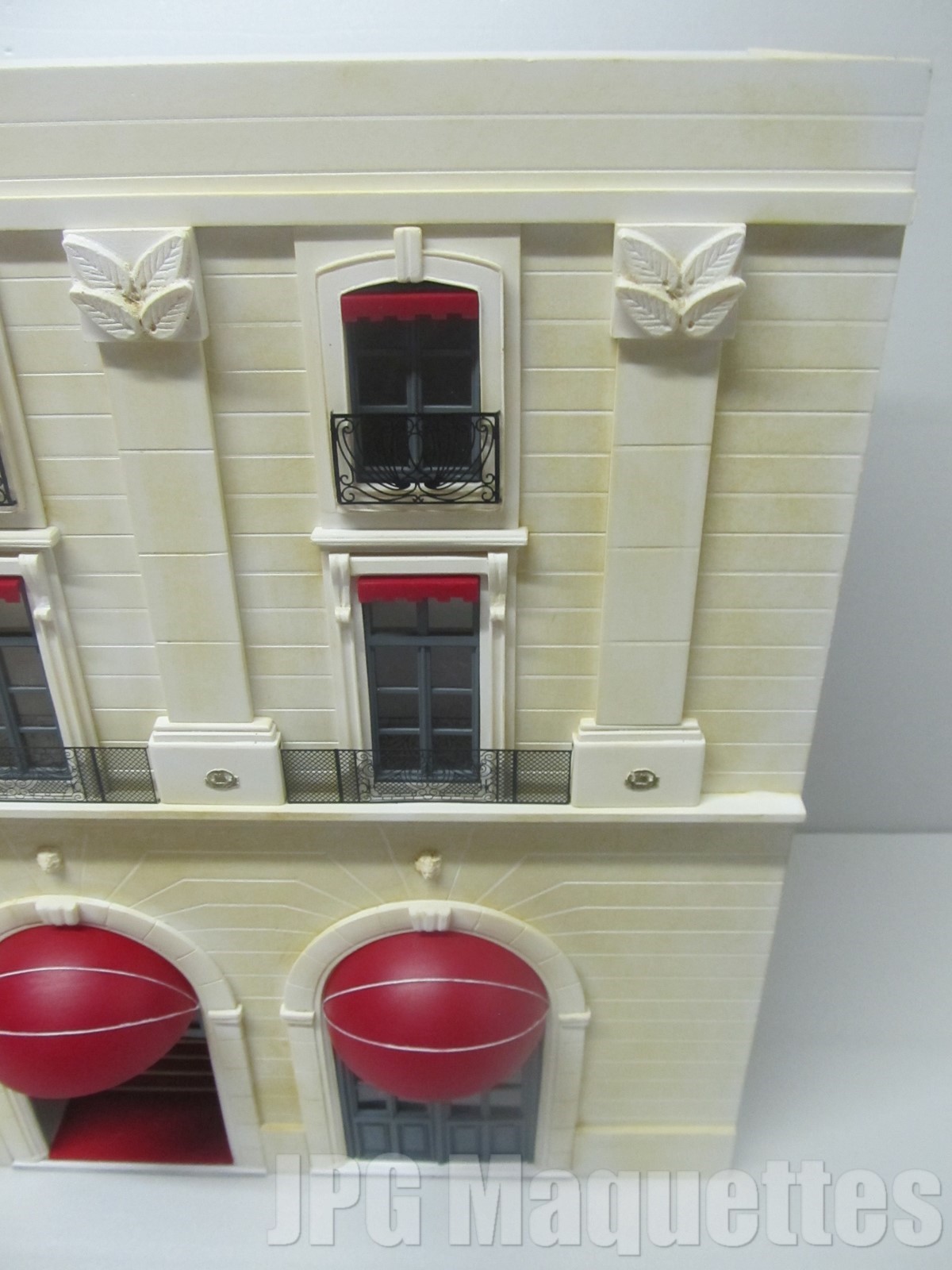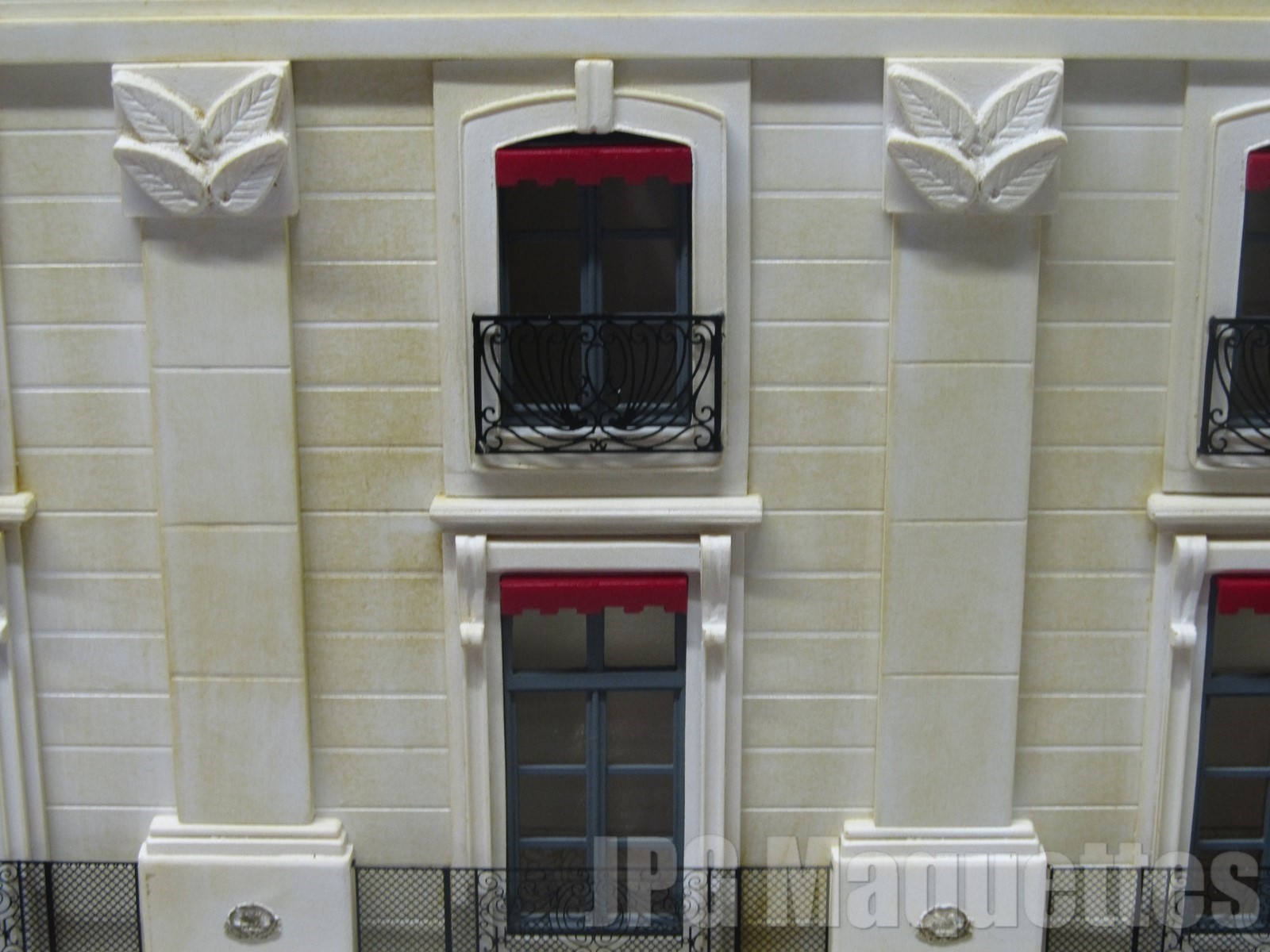 ATTENTION: dans cette version,les murs de la façade sont rainurés dans le style Hausmanniens),les garde-corps du 2 ème et les balcons du 1 er étage ( en photodécoupe) sont inclus.( provenance Atelier Belle Epoque)