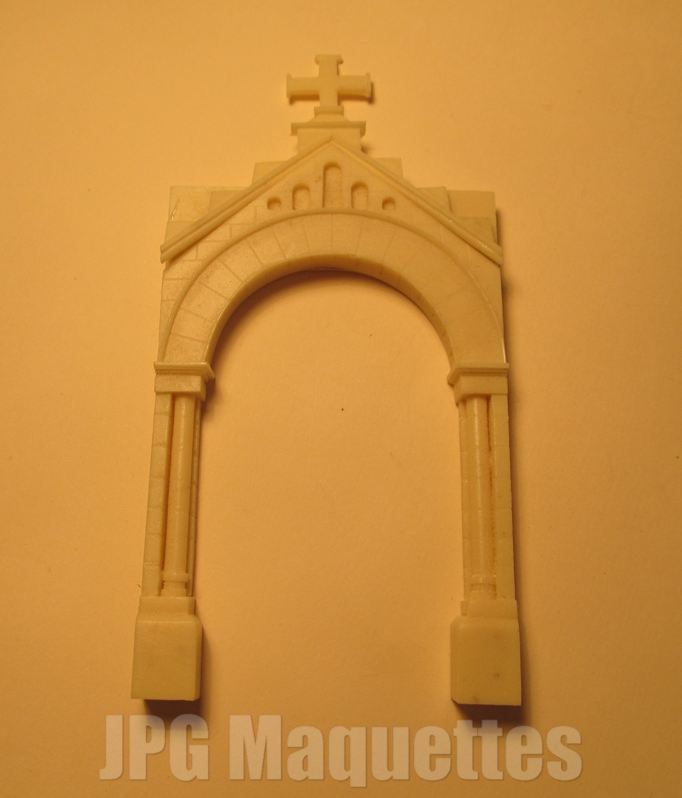 Entrée imitation pierre avec colonnes et ornement croix
