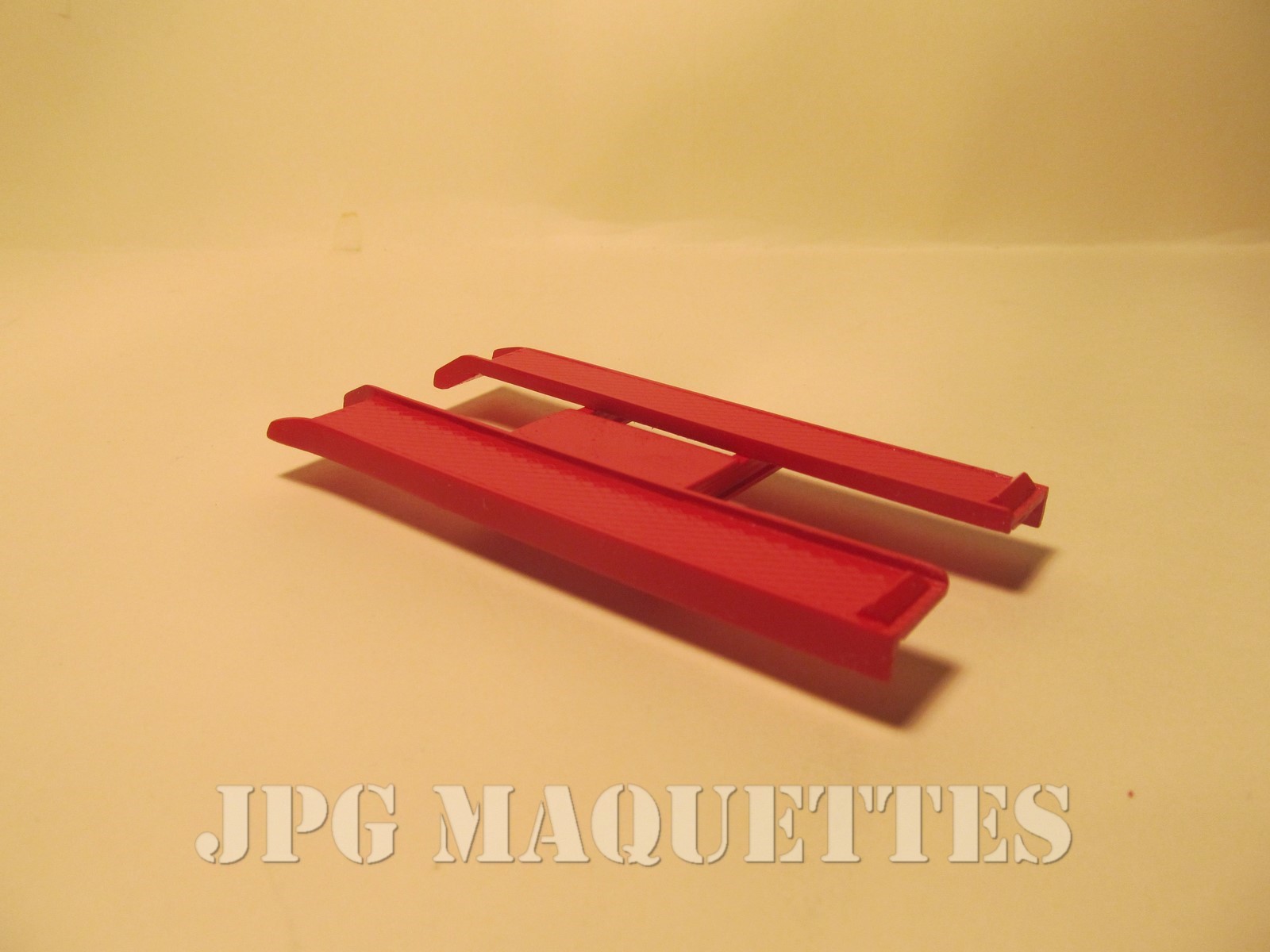Pont élévateur en résine, tube en aluminium, support à coller sur le sol.Vendu peint et monté uniquement.Dimensions: longueur 110 mm - largeur 50 mm - hauteur 20 mmEcartement des rampes: mini 20 mm - maxi 50 mm