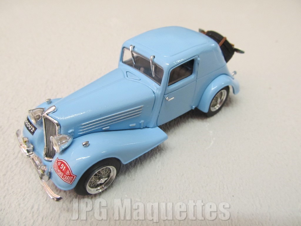 Nota: pour ce modèle je ne suis pas sur de la bonne couleur. Sur certains dessins trouvés elle est bleue, et  d'aprés des documents elle serait plutôt créme.De plus pour la petite histoire, j'ai pas mal de documents sur cette voiture, de différents auteurs qui sont trés compétents, il y a beaucoup de photos qui sont différentes,d'aprés eux, il y en a qui ont été faites pour les service publicitaire de l'époque mais aprés le rallye.